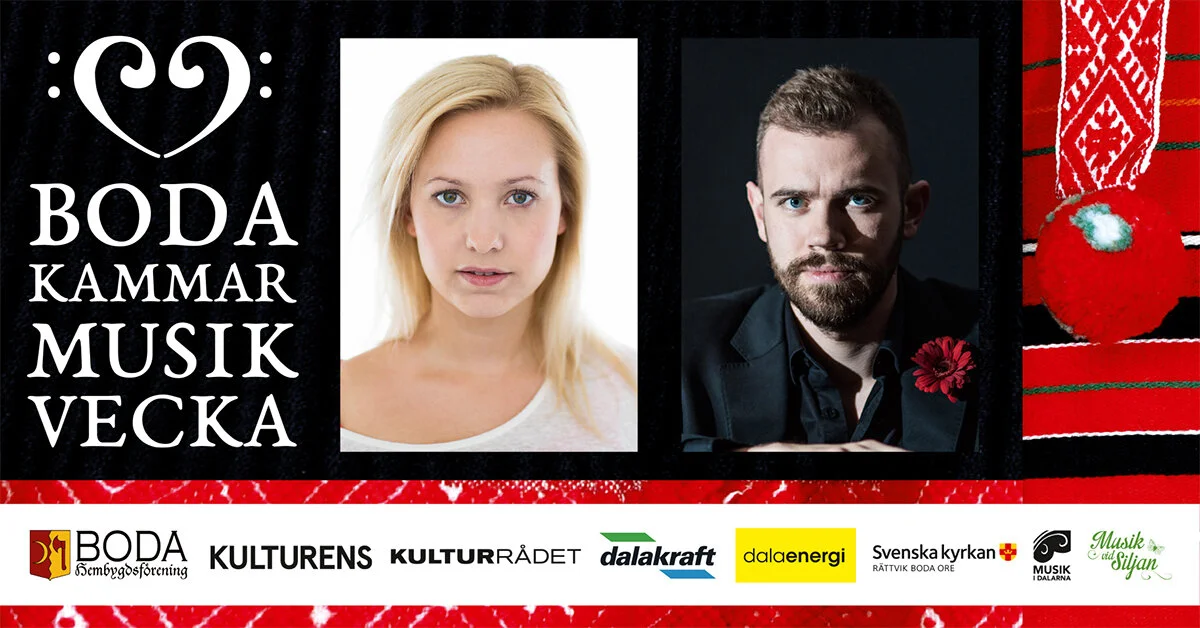 Romanskonsert i Boda kyrka Tuesday, July 6, 2021 7:00 PM 9:00 PM Google Calendar ICS Hanna Husáhr sjunger romanser av bland annat Nystroem, Stenhammar, Grieg och Korngold tillsammans med Henrik Berg under kammarmusikveckan i Boda.